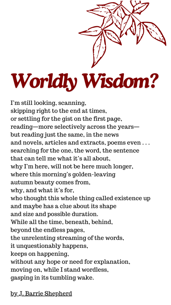We believe that wisdom will come. We convince ourselves that it will come when we get older and have more experience. I am wondering in this season if wisdom might just happen as the poet suggests below.